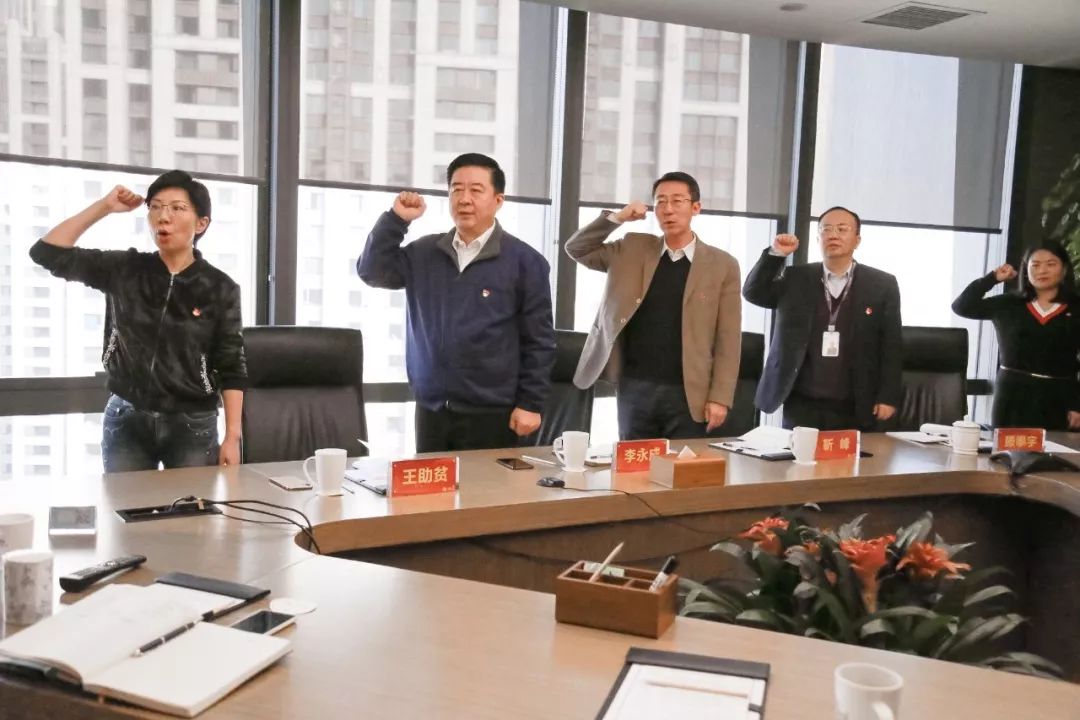 會(huì)議尾聲,王助貧帶領(lǐng)與會(huì)全體黨員重溫入黨誓詞,紅色的音節(jié)字字發(fā)自?xún)?nèi)心,鏗鏘有力、錚錚回響。