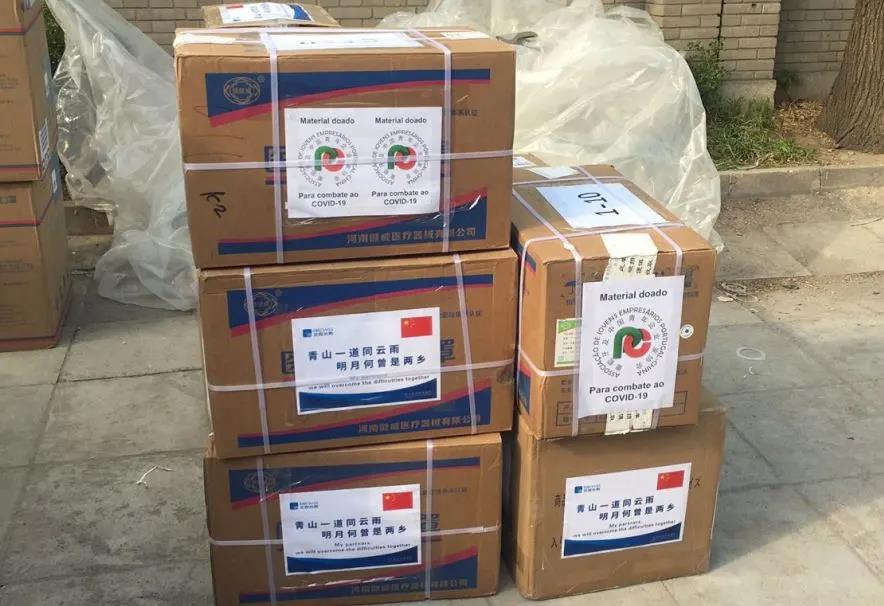 5月7日,由北京寄往北控水務葡萄牙平臺公司的防疫物資正在葡萄牙駐華使館,等待專機“飛”往葡萄牙。其中一部分物資將捐給當地中葡青年企業家聯合會。