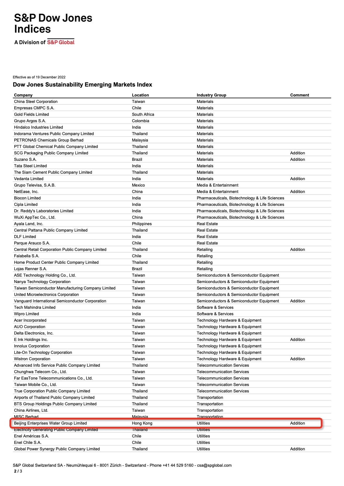 12月10日,標(biāo)準(zhǔn)普爾道瓊斯指數(shù)(S&P Dow Jones Indices)公布2022年指數(shù)回顧結(jié)果,北控水務(wù)集團(tuán)憑借在環(huán)境、社會(huì)及管治(ESG)方面的出色表現(xiàn),首次獲納入道瓊斯可持續(xù)發(fā)展指數(shù)(Dow Jones Sustainability Indices),并成為道瓊斯可持續(xù)發(fā)展指數(shù)新興市場(chǎng)(DJSI-Emerging Markets)成分股。本次調(diào)整結(jié)果將于2022年12月19日正式生效。