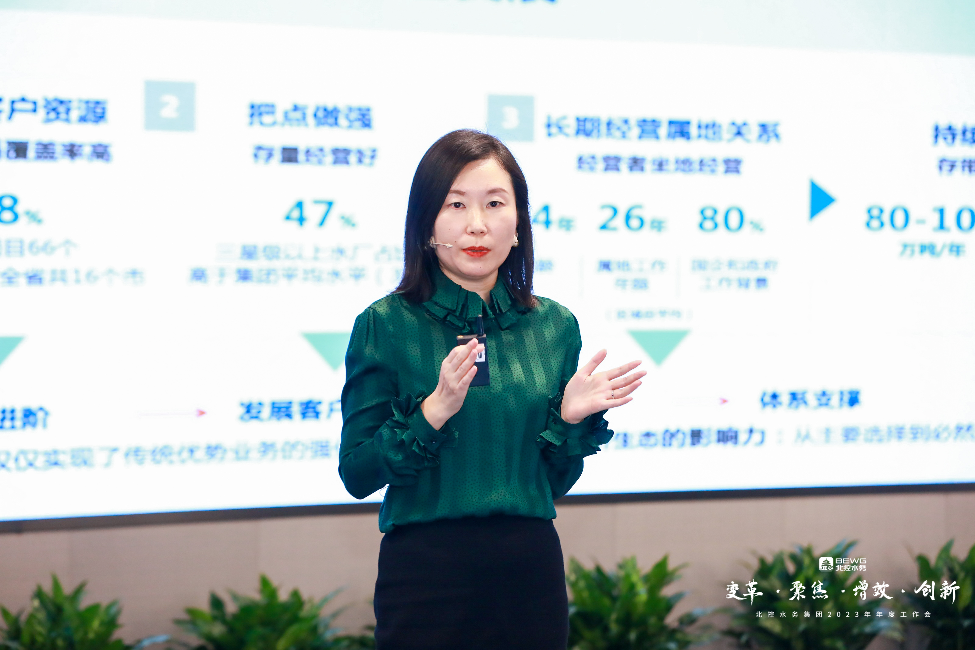 北控水務集團總裁助理馬韻桐詳細闡述了北控水務客戶經營演變路徑,重點強調客戶經營的重要性,提出客戶經營的六大要素和實施路徑,須充分發揮總部、大區和區域在市場體系下的三層組織能力。她表示,“成為客戶的戰略伙伴、成為城市的必然選擇”是北控水務經營客戶的終極目標,需要我們與客戶共謀發展,互相成就,努力成為“可靠的人、有溫度的人和創造價值的人”。