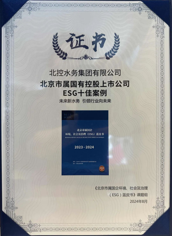 北控水務獲評“北京市屬國有控股上市公司ESG十佳案例” 2024-09-27