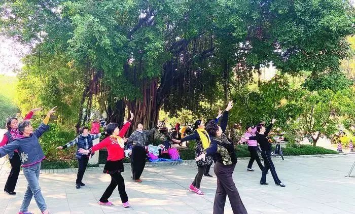 來到2019年國慶期間開園的打鐵港公園,記者漫步其中,紅旗和紅燈籠交相輝映,小廣場上樂聲悠揚,唱歌跳舞的居民笑意盈盈。
