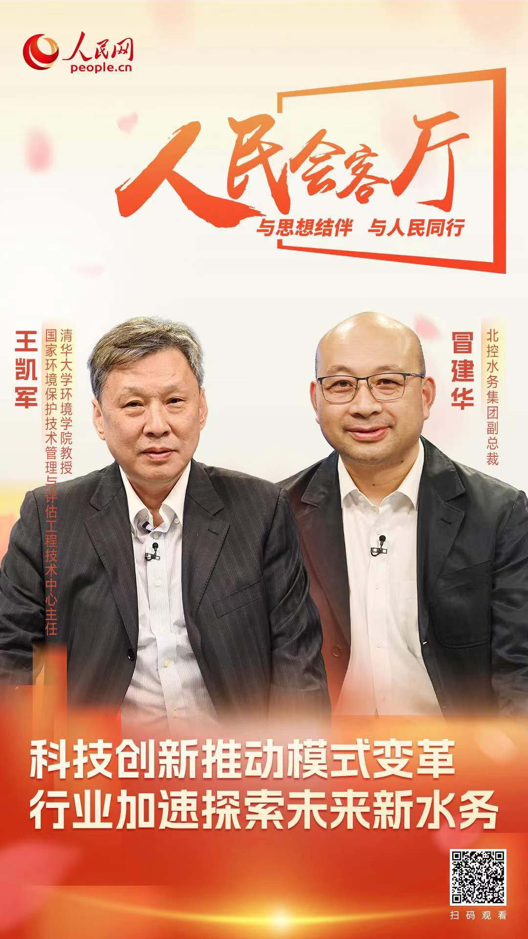 在世界環境日到來之際,清華大學環境學院教授、國家環境保護技術管理與評估工程技術中心主任王凱軍,北控水務集團副總裁冒建華做客人民網《人民會客廳》欄目,就水務行業未來發展方向、水務行業科技創新、行業企業發展戰略等問題進行探討分享。